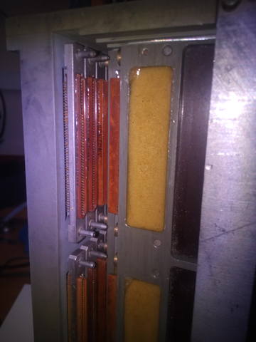 А мне вот "пакет" плат каких то подвернулся. Правда все в жуткой грязи были, крепёж "книжки" помят и даже некоторые повреждены в пакете. Жгуты межплатные обгоревшие и всё это закопчено. Но вот одну из средних, в пакете удалось выдрать и отмыть. И О Чудо ! Дорожки на плате посеребрённые! Такое первый раз встречаю. Именно не луженые, а серебро. На этой вроде без дефектов, а на других, крайних, лак задрался и серебро "благородно" почернело. ![]() Ну и да - КМ-ки исчезнутые. Остальное видимо не посчитали сколь нибудь ценным. |