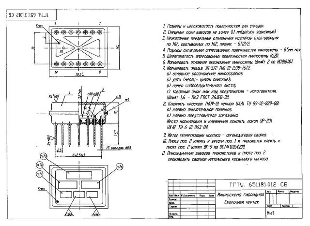 Правда у неё есть одно слабое место, это именно гибридка М11-01. При всей привлекательности её возможностей, качество сборки её было видимо не на высоте, этот элемент меняли достаточно часто, причём при выходе из строя корпус гибридки нагревался градусов до 80, в результате КЗ внутри корпуса. Все перечисленные микросхемы выполнялись на двух керамических подложках, на одну сторону каждой наносился монтаж, затем обе подложки тыльными сторонами складывались вместе и склеивались, получалась эдакая книжица, теперь этот пакет вертикально крепился к основанию гибридки и ножки подпаивались к площадкам на подложках, один ряд ножек к одной подложке, другой ряд ко второй подложке.