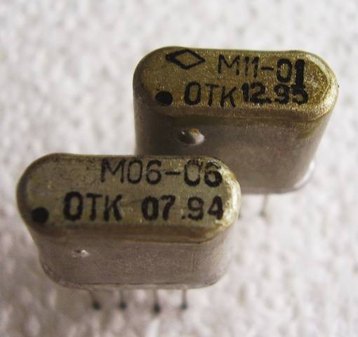 Пожалуй можно немного осветить серию Мх-хх специализированных гибридок для радиосвязных устройств. Достоинство этих микросхем, это электромагнитное экранирование при помощи металлического корпуса - алюминий с гальваническим покрытием под пайку, внешне напоминают корпуса кварцевых резонаторов в металлических корпусах, например серии РК-170.